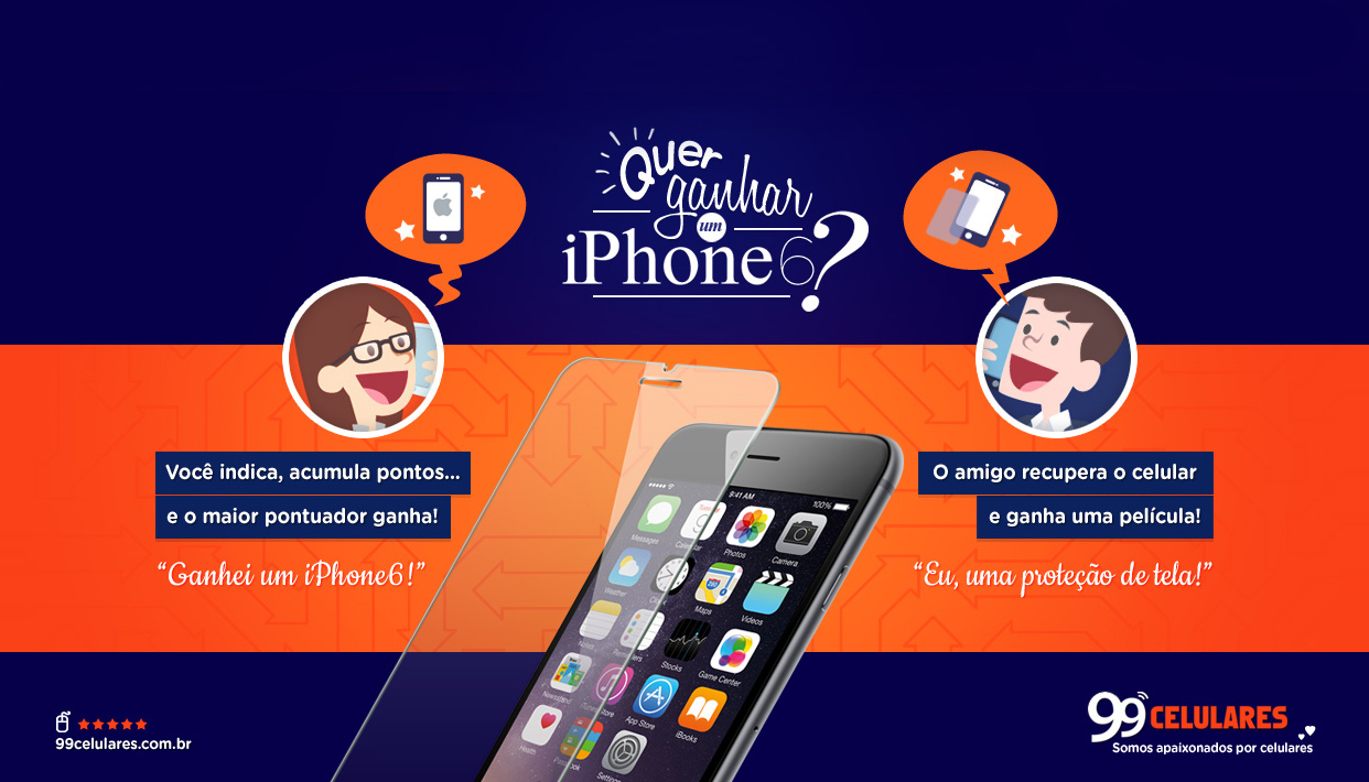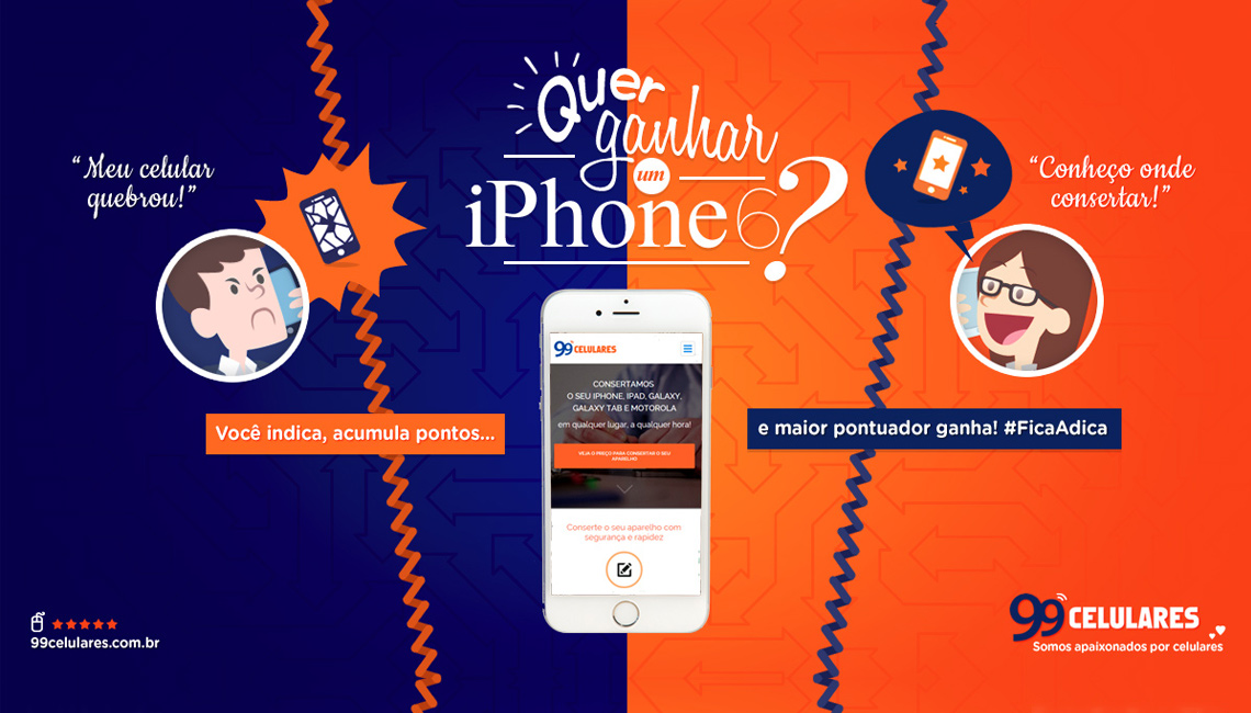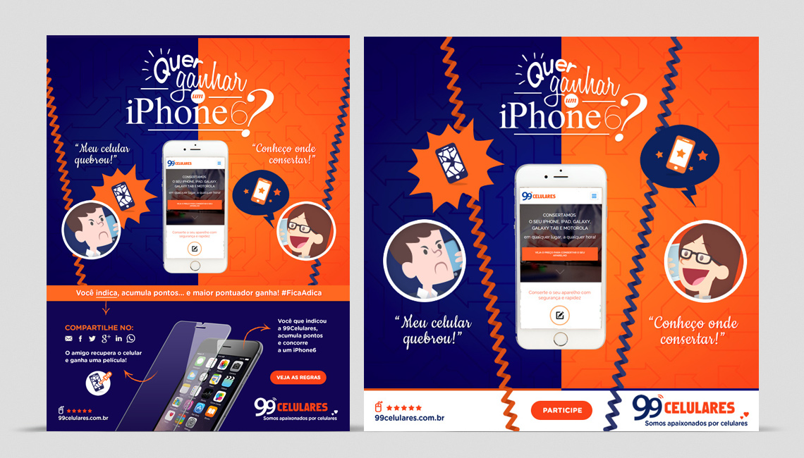 Criação de peças para campanha digital da 99 Celulares.